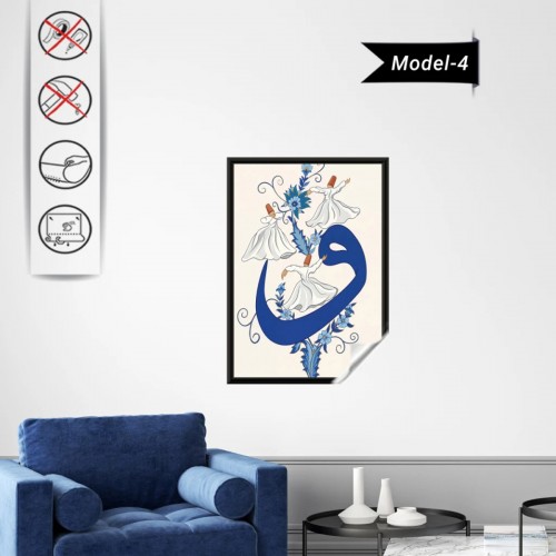 Sihirli Kağıt Dini Tablo-87 Semazen Hat Sanatı Statik tutunma özellikli yapıştırma gerektirmez