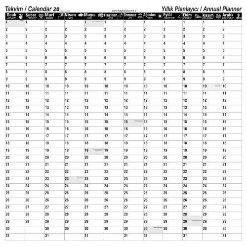 İstenilen yıla uyarlanabilir takvimdir.
