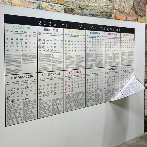 Sihirli Kağıt 2026 Yearly Calendar Planner Special Printing Static Cling No Gluing Required 70x85 cm..