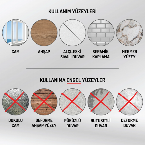 It clings like a magnet when it comes into contact with flat, clean and dry surfaces such as glass, wall, wood, marble, etc.